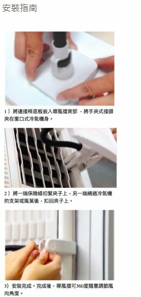 全方位多角度風向調節,告別直吹煩惱。導風擋主板為HIPS塑膠物料,體積輕巧,外型美觀。