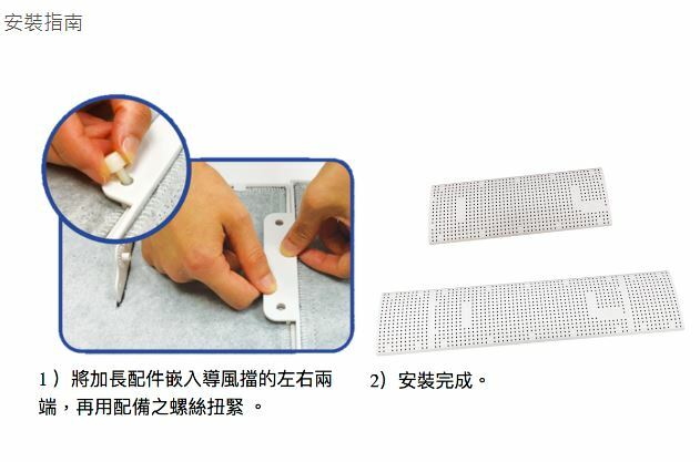直接嵌入導風擋兩端,再用配備之螺絲扭緊。