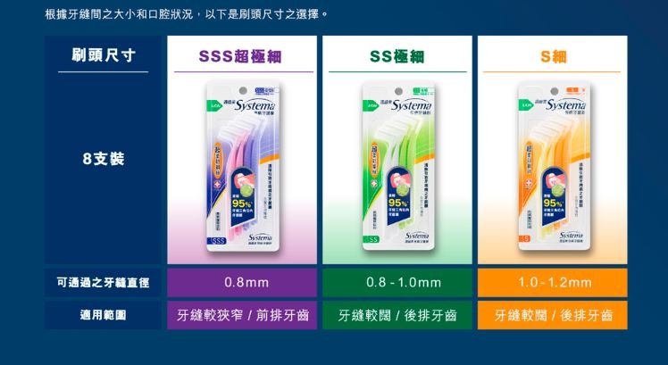| 適齒美牙縫刷能深入難刷的牙縫三角位,清除齒縫間之食物殘渣及牙菌膜,減少牙菌膜積聚,幫助預防牙周病。 |