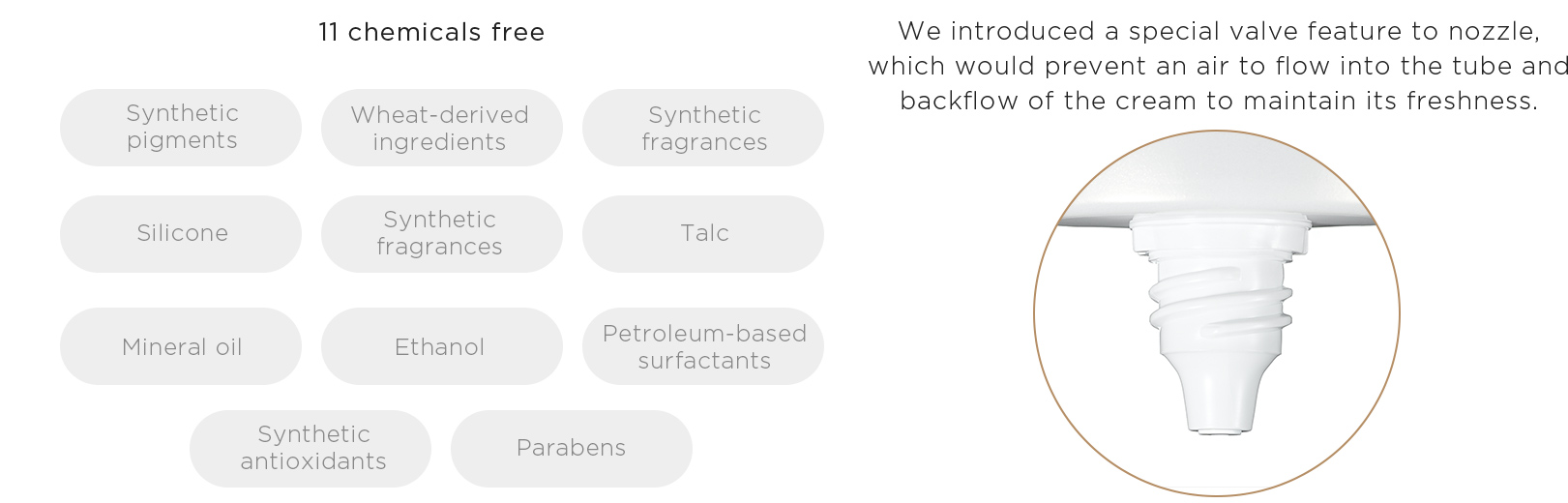11 chemicals free: UV-absorbing agents, silicone and 9 other problematic ingredients